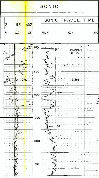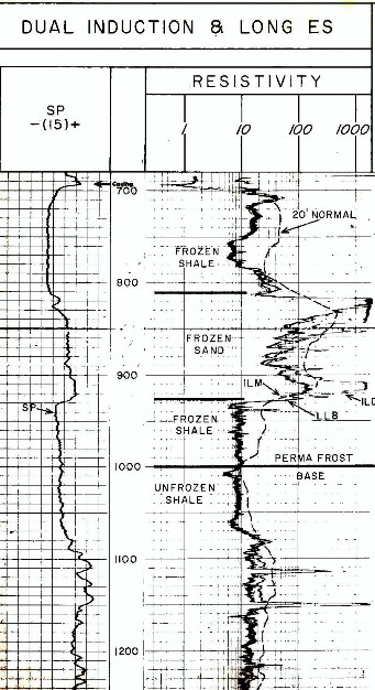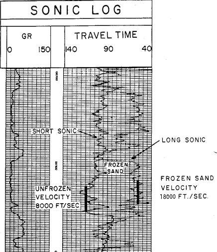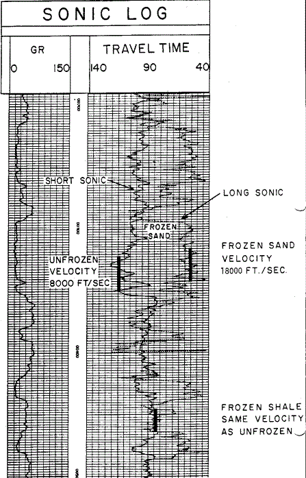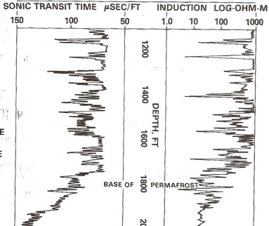 to permafrost. In this case, the short spaced sonic sees the thawed