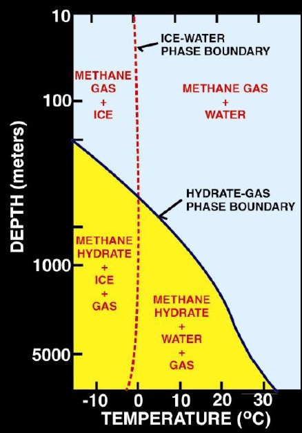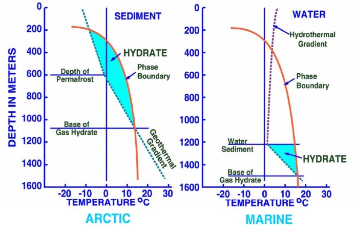 unfrozen well below zero Celsius. Gas hydrates remain frozen