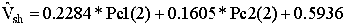 shaliness on the PC2 vs. PC1 crossplot. PC2 values are around