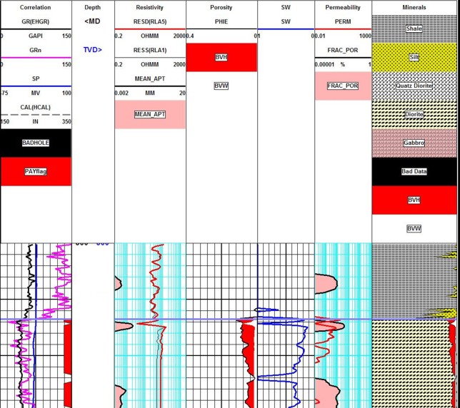- shaded pink) and fracture porosity (Track 4- shaded oink) both