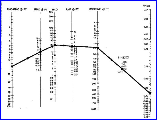 for hydrocarbon zone with medium porosity SXO = 0.70