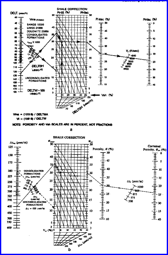 To solve for porosity from the sonic log, we assume DTCh, DTCi,