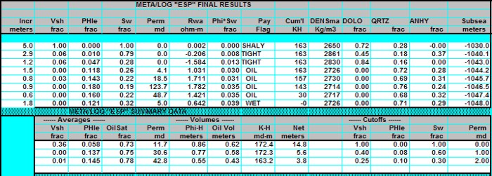 SPR-04 META/LOG ESP Advanced Log Analysis Oil Gas Metric and USA