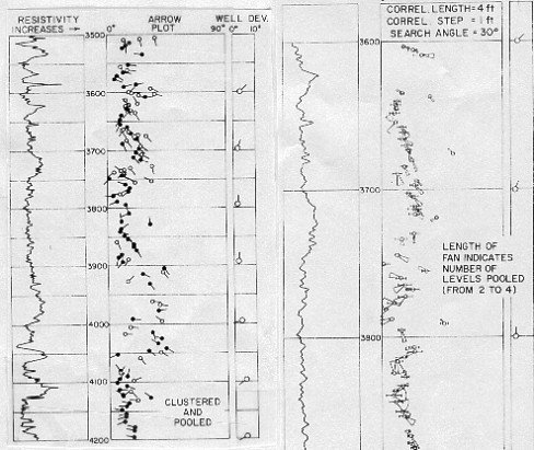 of the 4 pad, 8 button stratigraphic dipmeter. Pooling and