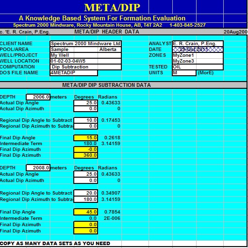 spreadsheet provides a tool for Dip Subtraction (Regional Dip