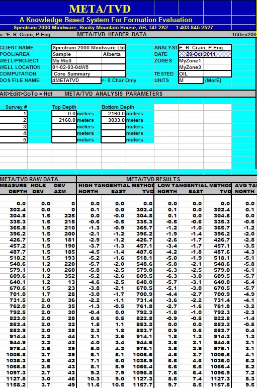 "TVD" SPREADSHEET -- True Vertical