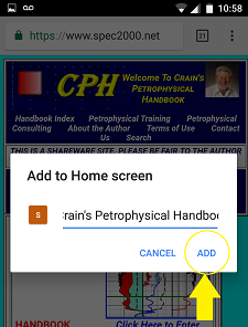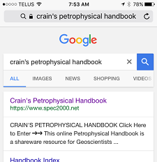 To make it easier to take advantage of these advancements, you may want to create “Crain’s Petrophysical Handbook App” on your device so you can access the handbook with the touch of a finger! Select the instructions below that are most appropriate for your device: