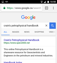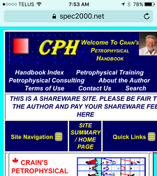 Crain’s Petrophysical Handbook is now "Mobile Friendly". The website has been updated to improve viewing and navigation on mobile devices (smart phones, tablets) as well as desktop computers and laptops with a narrower viewing area.