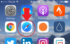 STEP 1: On your mobile device open Safari or another website browsing application. The following instructions will use Safari but other website applications should have similar functionality. See Figure 1.