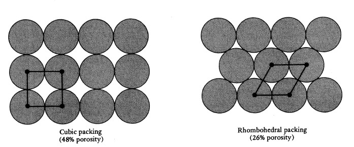Cubic packing 47% porosity (left) Rhombic packing 26%