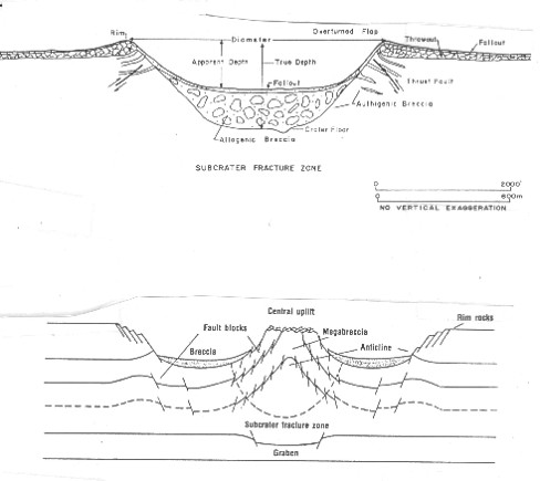 Impact crater traps have hundreds of small faults and complex structure. Regional dip superimposed on such a trap makes the accumulation of hydrocarbons exceedingly complicated.