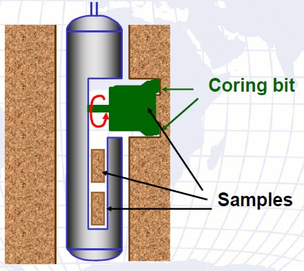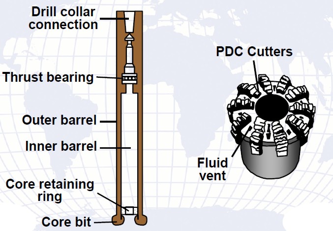 (usually a diamond bit), a core barrel to hold the recovered core,