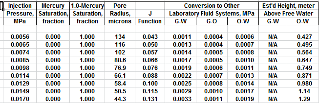 "META/SCAL" Spreadsheet -- Capillary Pressure Summary