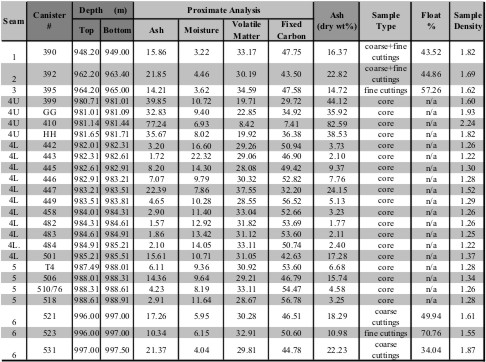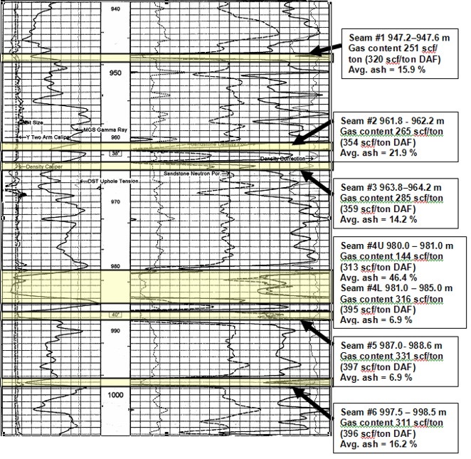 layers analyzed by proximate analysis. Log curves are GR, CAL, PE,
