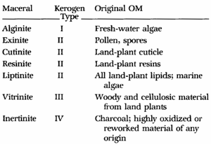 macerals are Type 3 and Type 4 Kerogens. Coals are often described