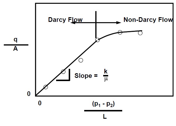 Graph ratio of flow rate to area (q/A) versus the pressure