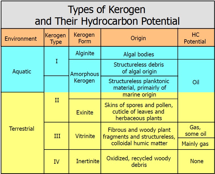 fungal bodies. Type IV kerogen is not always distinguished but is