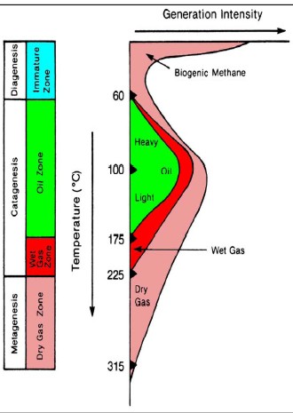 (< 175 C) produce mostly oil and a little gas. Warmer temperatures