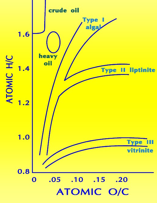 Type II kerogen is intermediate in composition (H/C ≈ 1.2: HI ≈ 600)