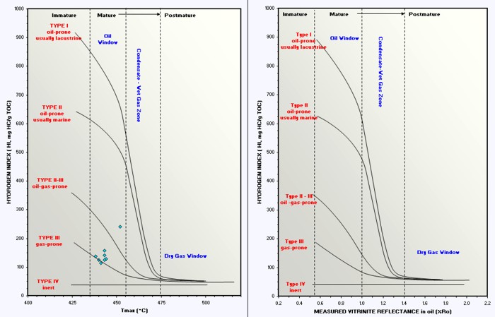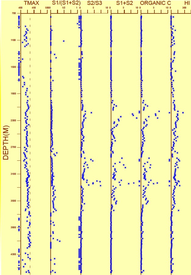 to the oil and gas "windows". Depth plots of Ro and Tmax are helpful