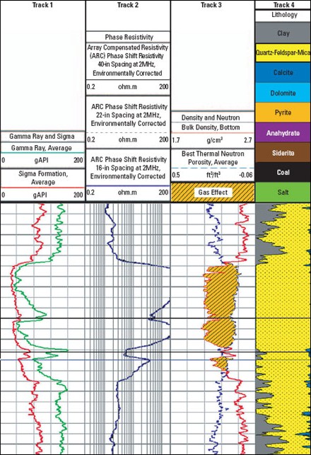 curves in Track 3. The low resistivity below the heavy