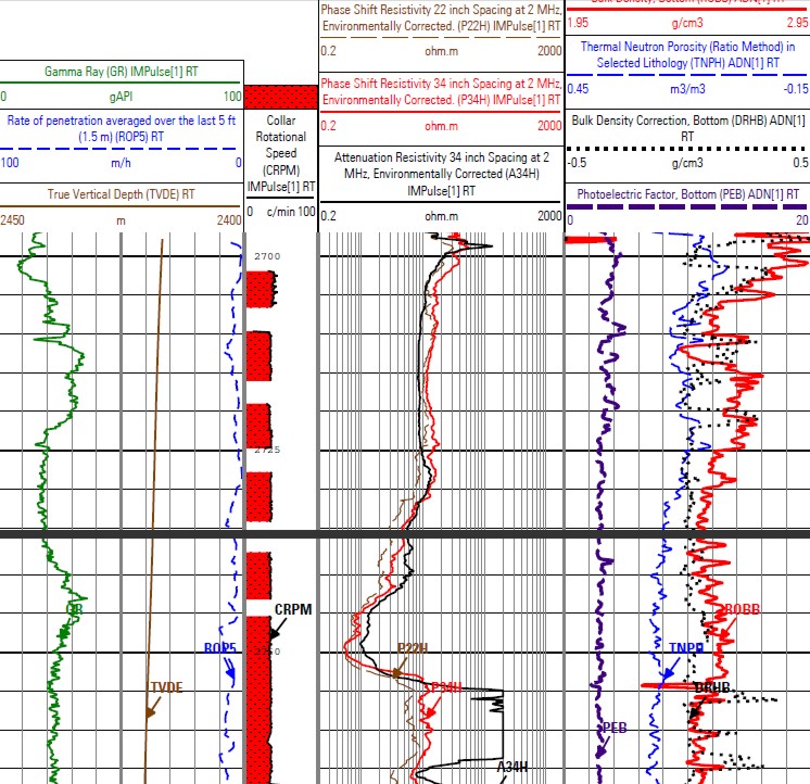 and bit RPM. Track 2 gives shallow, medium, and deep resistivity