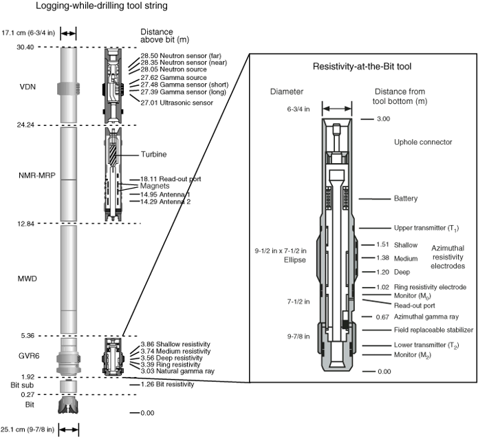 Schematic drawing of a typical LWD tool string with multiple
