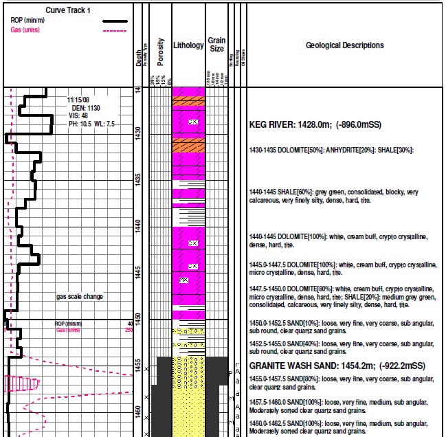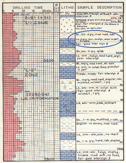 A hand drawn sample log typical of the 1940 to 1970 era.