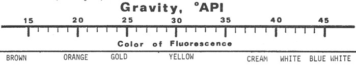 oil. Pale blue-white is high gravity (light) oil, yellow is medium