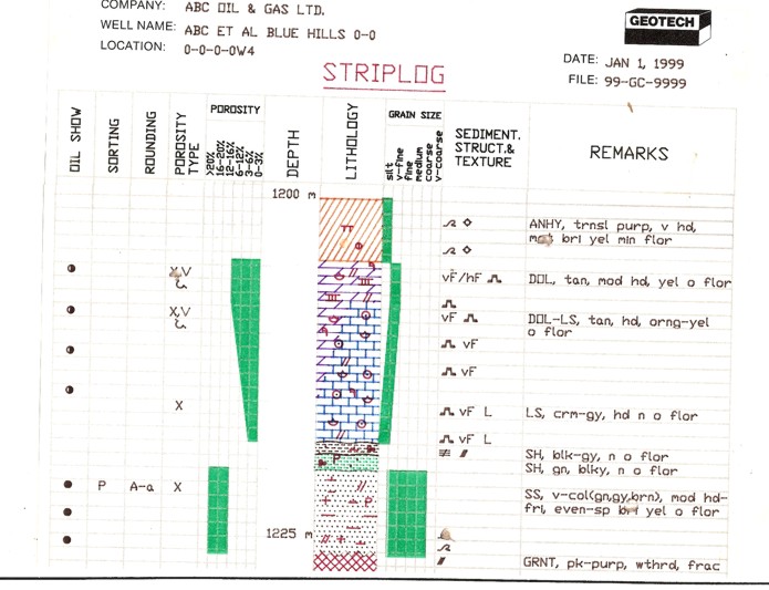 A computer drawn sample log of the 1980's. Hand drafted logs could
