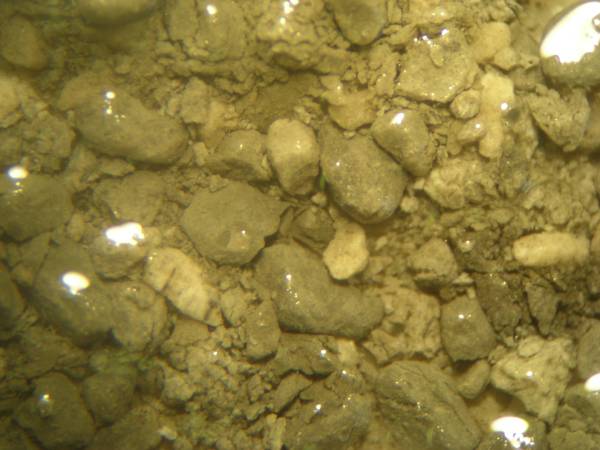 Washed rock chips are observed under a microscope (10 to 20 power)