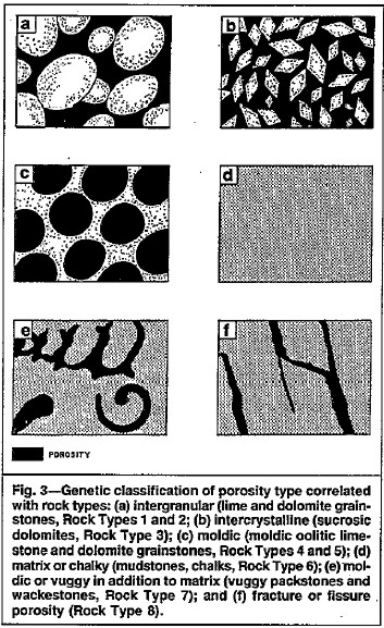 Porosity Types: a. intergranulas, b. Sucrosic,