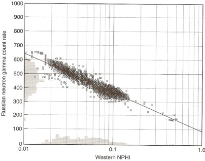 crossplot of count rate versus porosity for a group of Russian log