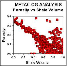 This material balance prevents the sum of shale volume, porosity, and rock matrix from exceeding 100%, and prevents porosity in the sand fraction of a shaly sand from reaching ridiculous values. It is useful for estimating porosity in shaly sands where only an SP or gamma ray log is available. CAUTION: Bear in mind that this approach provides a porosity value based only upon the shale content and the analyst's assumed maximum possible porosity. With offset well data for control this is not a bad approach for wells with a very limited log suite. It is often used in computer analysis of ancient logs. Because of its gross assumptions, a warning note should be annotated on the results, if the method is used in this manner.