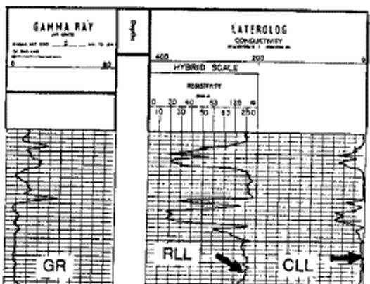 (dotted curve) and original lateral (solid curve) The lateral curve can be used for handpicked data by following the special rules shown above. Because the lateral curve has a blind spot over the top or bottom of every resistive zone, it cannot be used in computer aided log analysis unless it is pre-processed with resistivity inversion software. However, even this sophisticated software is a poor solution, as it tends to draw a straight line through the blind zone, which you or I could do faster and cheaper with a red pencil.