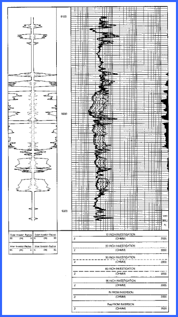 High resolution laterolog showing deep invasion and high resolution image. All curves are focused to