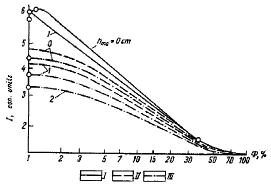 usual density to porosity transform is used: Most tools were single detector, uncompensated types. These are severely affected by hole size, mud weight, mud cake thickness, source type and strength, source detector spacing, and detector efficiency. The High-Low calibration method compensates for all these problems, but available charts do not. In the earliest versions of these tools, the source strength decayed at the rate of about 1% per week, so count rates definitely need to be normalized on a well by well basis. Similar tools, with better sources, were available in North America in the mid 1960's. I actually ran such logs in slim sulphur-exploration strat holes in the Canadian Arctic Islands in 1969. Newer Russian density tools are dual detector with some degree of borehole compensation, and some are scaled in gm/cc. An alternate to the semi-log High-Low method was used with early neutron and density logs in the West as well as in Russia. This involves "relative count rate excursions" and service company charts of these values versus the desired rock property (porosity, density). The problem, of course, is that you need the chart unique to each tool and sufficient patience to do the constructions. Below is the instruction set developed by Lane Wells from their 1964 Technical Bulletin on their Densilog Tool..