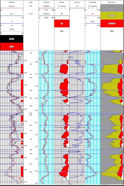 About half the wells had neutron logs. Each was scaled to porosity with the High-Low porosity method. Nearly every well had a gamma ray, so porosity was found from PHIe = PHIMAX * (1 - Vsh). PHIMAX came from the core data. Both porosity curves were compared on a well by well basis and the neutron was discarded where it made no sense. Resistivity was dominated by lateral curves with the blind spot at the top. Standard computer algorithms would have made a water zone at the top of each reservoir layer, so we used Buckle's number to generate Swb = KBUCKL / PHIe / (1 - Vsh). This worked well as there was no need to zone for water. After that, it's common sense and an eye for the ridiculous answer caused by scale or curve choice errors.