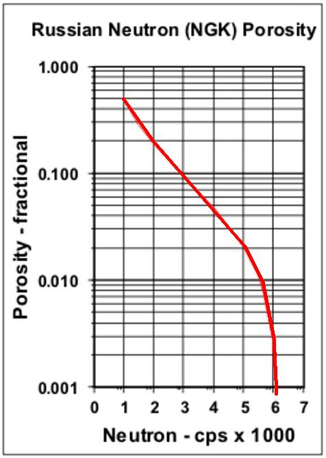 made using core porosity to calibrate Russian neutron logs. Typical accuracy of this type of log is about +/-3% porosity at all porosity levels, about three times worse than a modern neutron log.