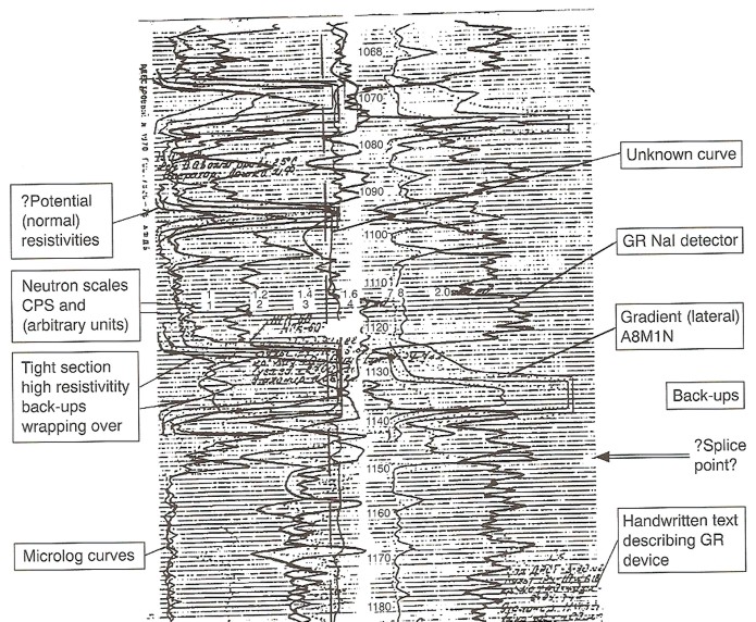 Western exploration companies who want to work these areas should acquire and translate the core and sample descriptions. Since it is nearly impossible to calibrate porosity calculations from the unscaled neutron logs without some core control, it is also critical to transcribe all the porosity and permeability data into spreadsheets. Except for translation, these are the same steps we would use to calibrate our work with Western style logs.