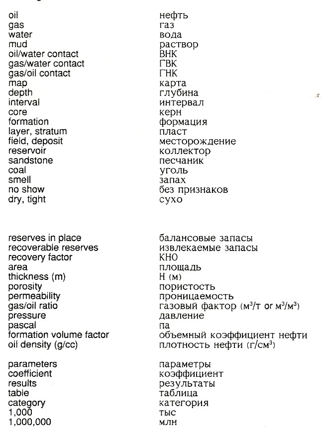Thus PHIeff is the porosity that could hold hydrocarbons. This has sometimes been called "useful" porosity in the West and is equivalent to the "moveable fluids" in an NMR log analysis model. How SWir is determined for the Russian core analysis report has not been defined in the references available to me. Further confusion is caused by the abbreviations used in Russian reports of all kinds. For example, all laboratory measured rock properties are abbreviated with the letter "K", representing the word "coefficient". Thus Kn is total porosity, Kpo is open porosity, Knp is permeability. Kh represents oil saturation (not horizontal permeability), Kb is water saturation. The subscripts are Russian alphabet, not Roman, so be very careful and read the full words in the report..