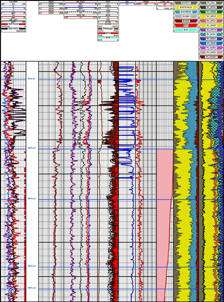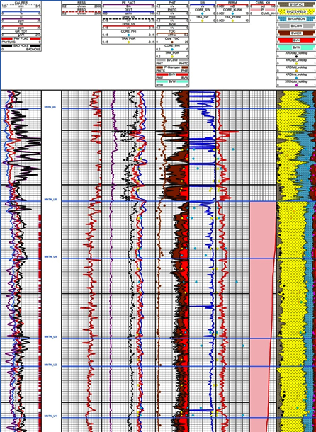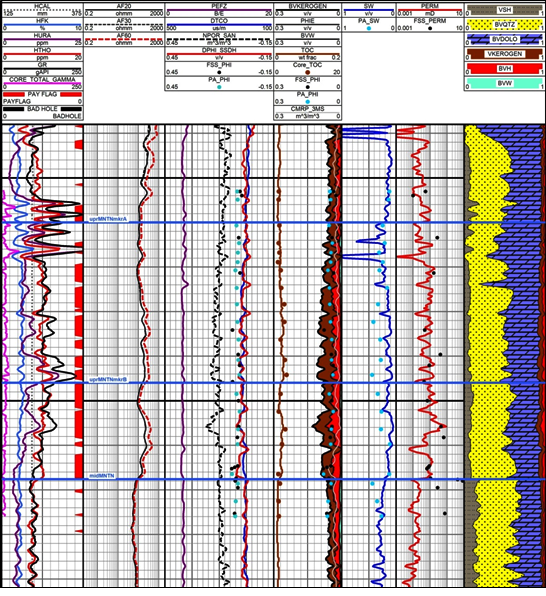 quart/feldspar, and carbonate volumes. Doig / Montney interval displaying