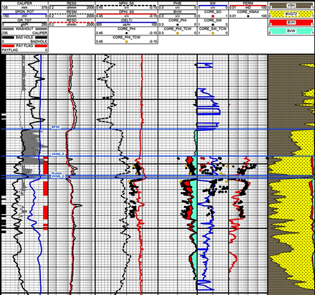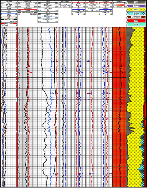 Calibrate results to NMR effective porosity (3 ms cutoff) or high temperature Dean-Stark core analysis, drives off clay bound water, or conventional helium or Boyle's Law core analysis. Adjust parameters or select alternate porosity model to obtain a better match.