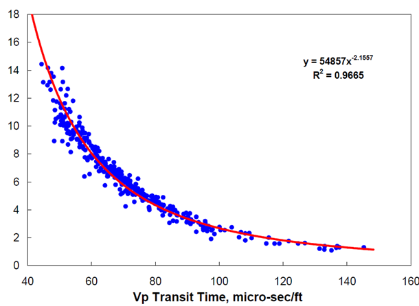 An exponential equation derived from regression of core permeability against core porosity may also work well. High perm data caused by micro or macro fractures should be eliminated before performing the regression.