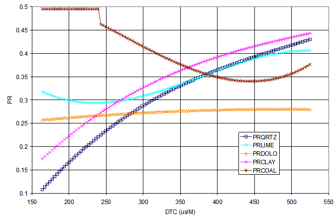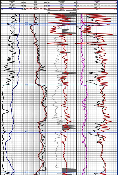 to changes in grain density and bore hole conditions), sonic only (very sensitive