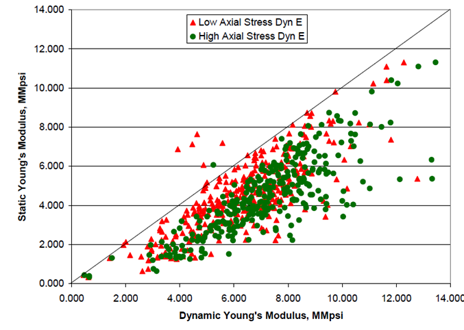 to an elastic wave, compared to a rock mechanics laboratory (triaxial)