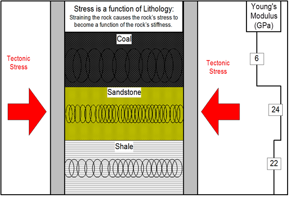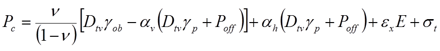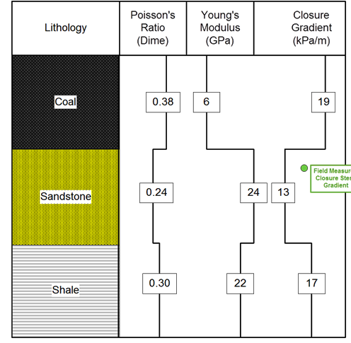 Closure stress is calculated using GOHFER’S Total Stress equation and must be calibrated to local field conditions with a strain or stress correction factor. In tectonically active areas, the closure stress calculated from logs will be too low and will need to be increased. Generally, the strain offset approach is favoured.