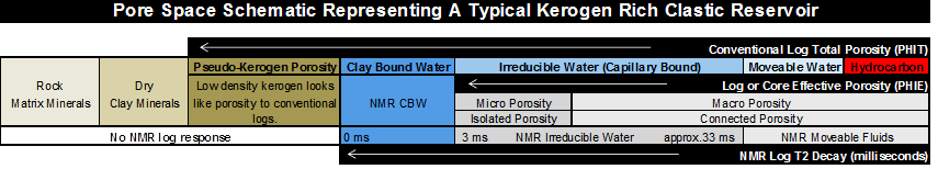 porosity includes clay bound water (CBW). Kerogen will also look like porosity to conventional logs.