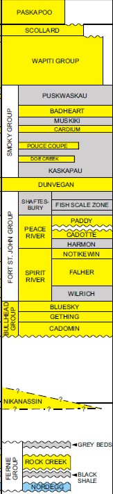 are shown below for the Falher, Nikanassin, Gething, Cadotte and