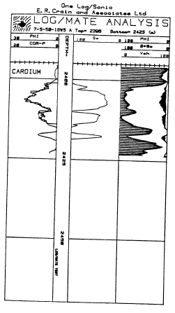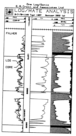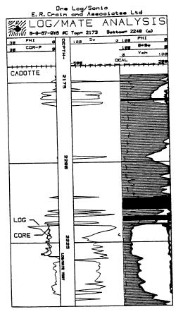 Cardium zones. Note the good match beteeen log and core porosity (in